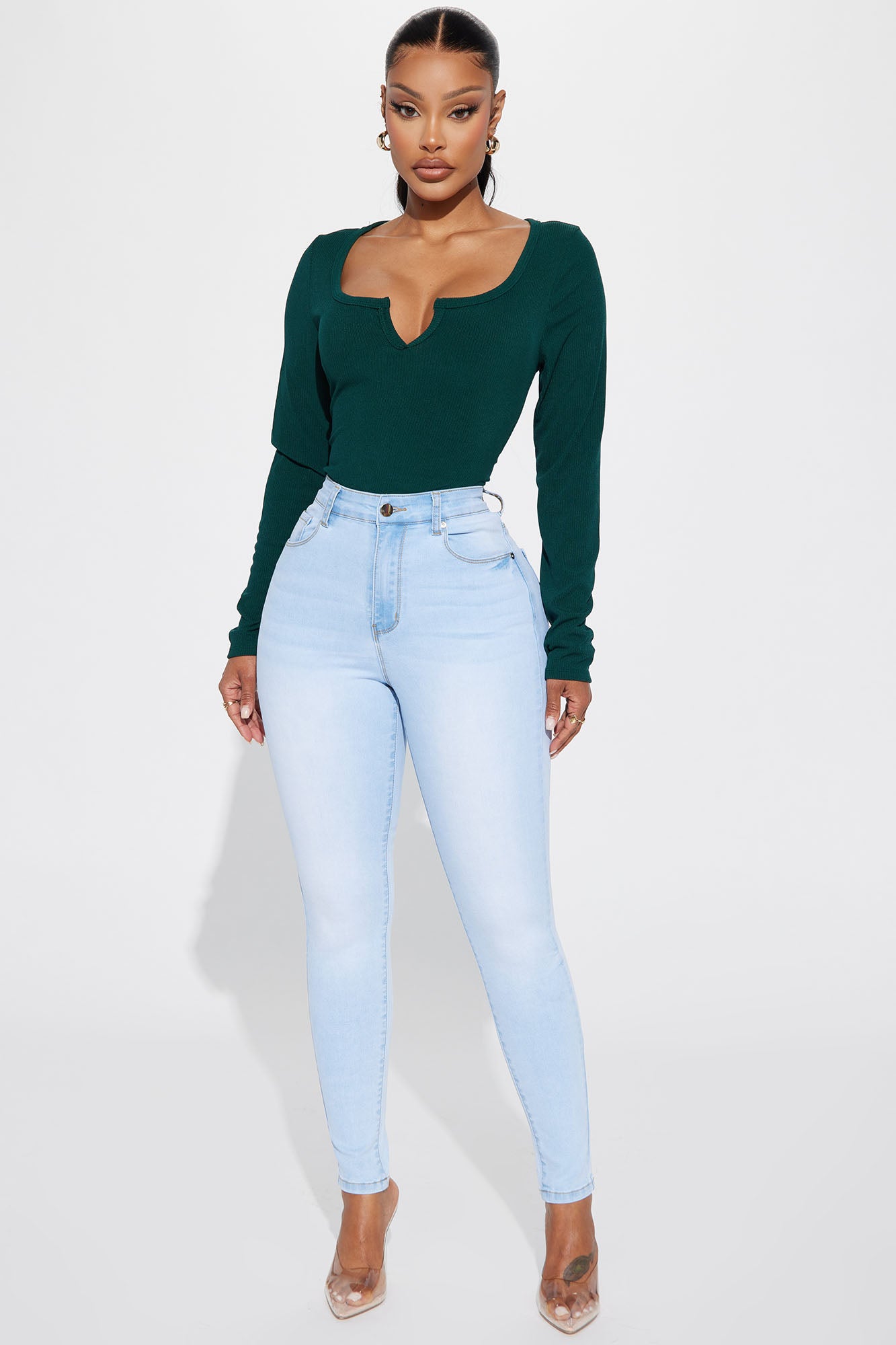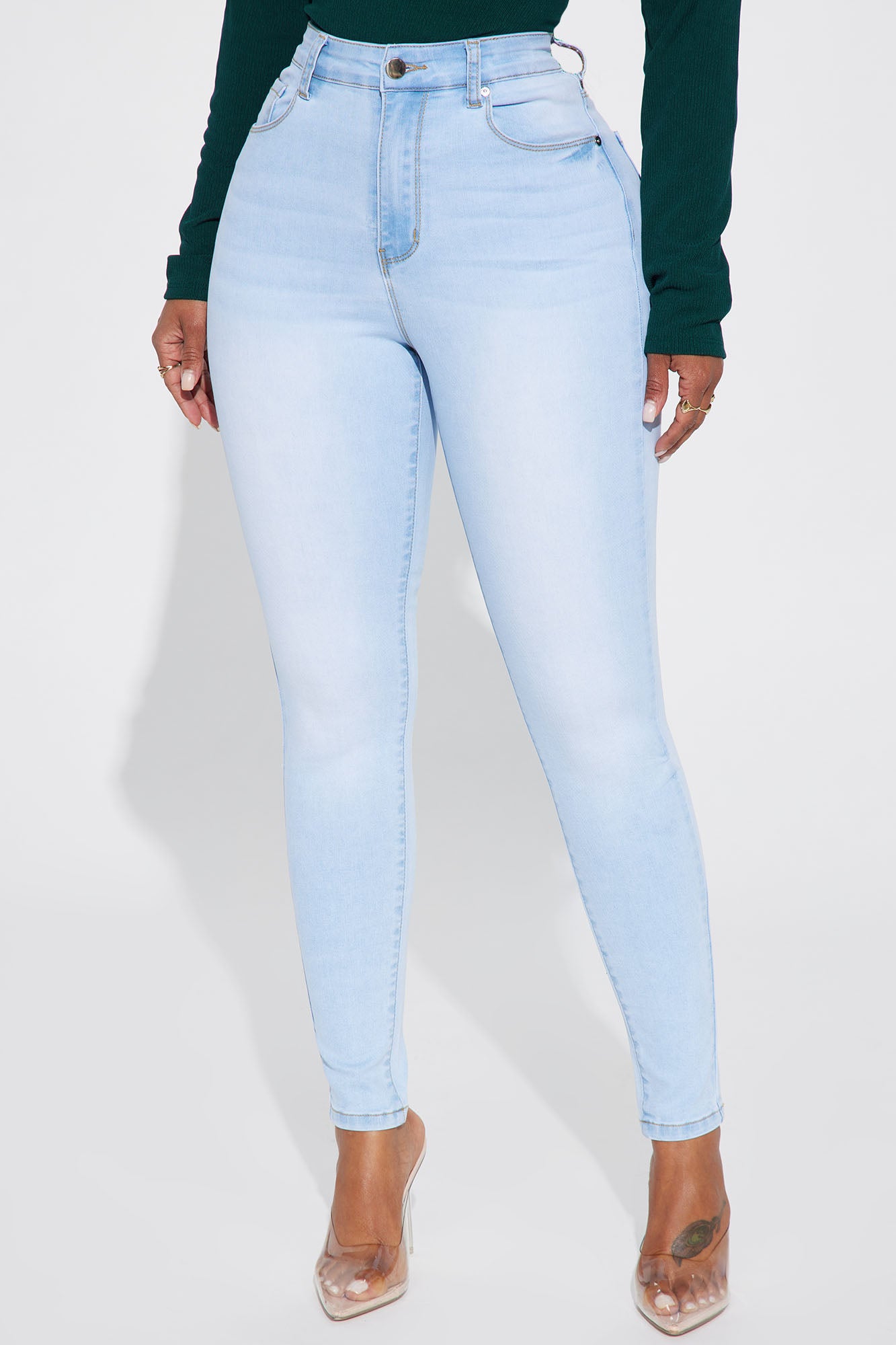 Get You Alone Booty Lifter Skinny Jeans - Light Blue Wash