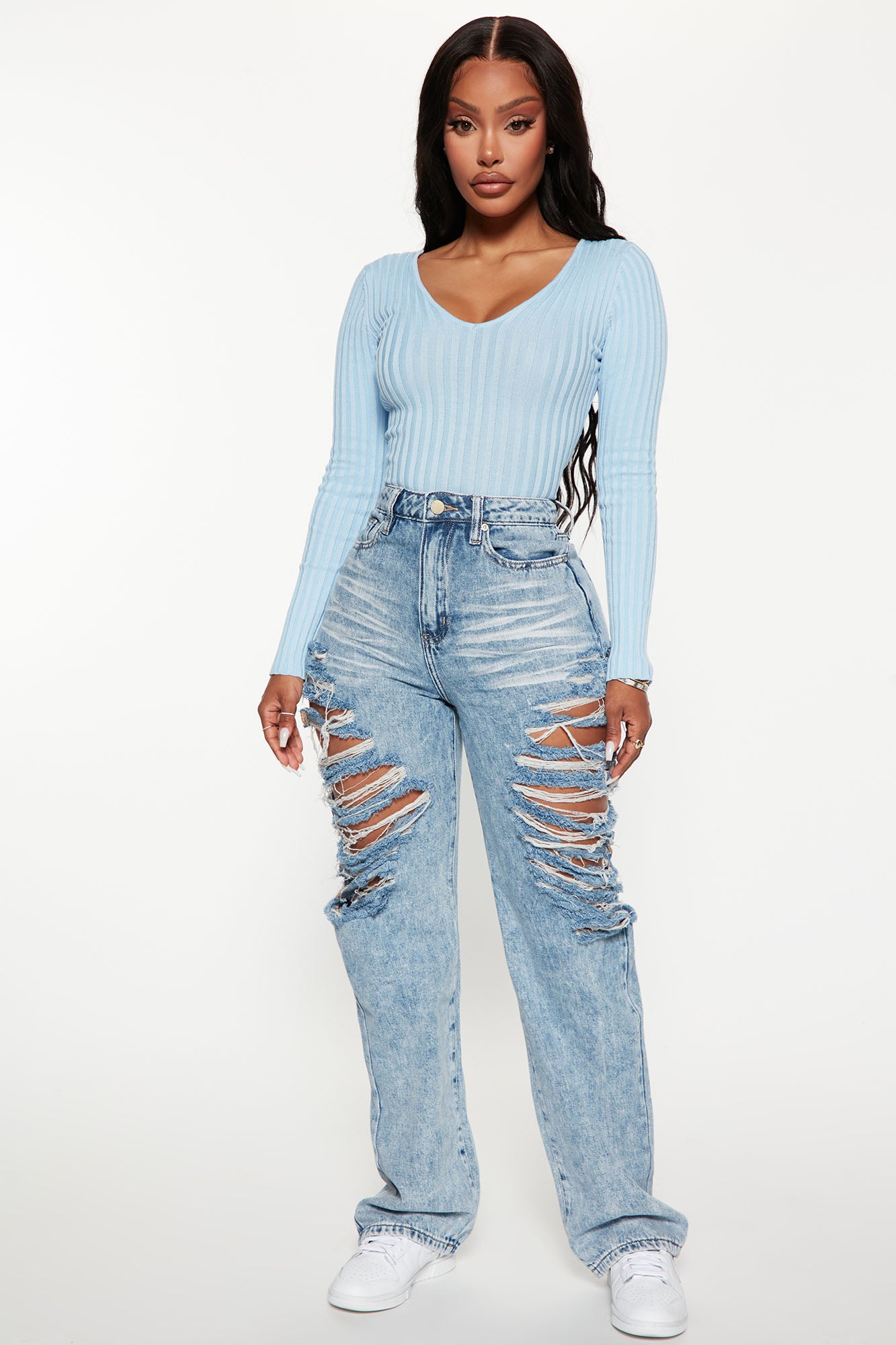 Feed My Ego Slouch Fit Jeans - Light Blue Wash