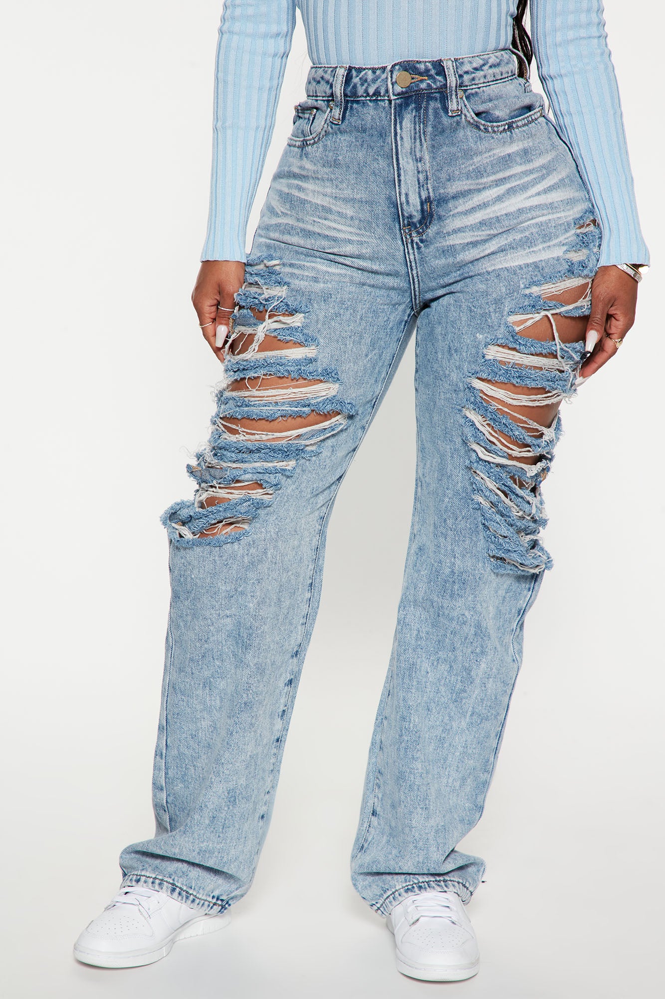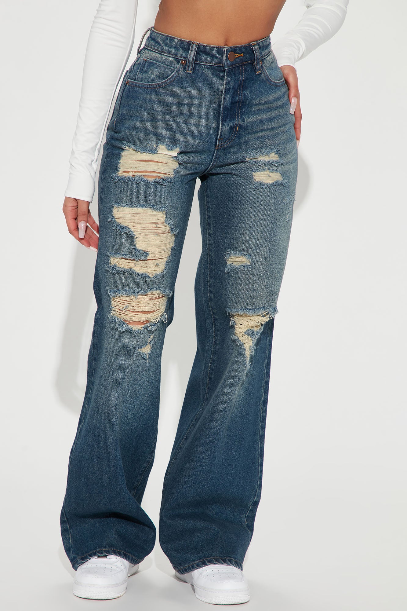 Go All Out Shredded Straight Leg Jean - Medium Blue Wash