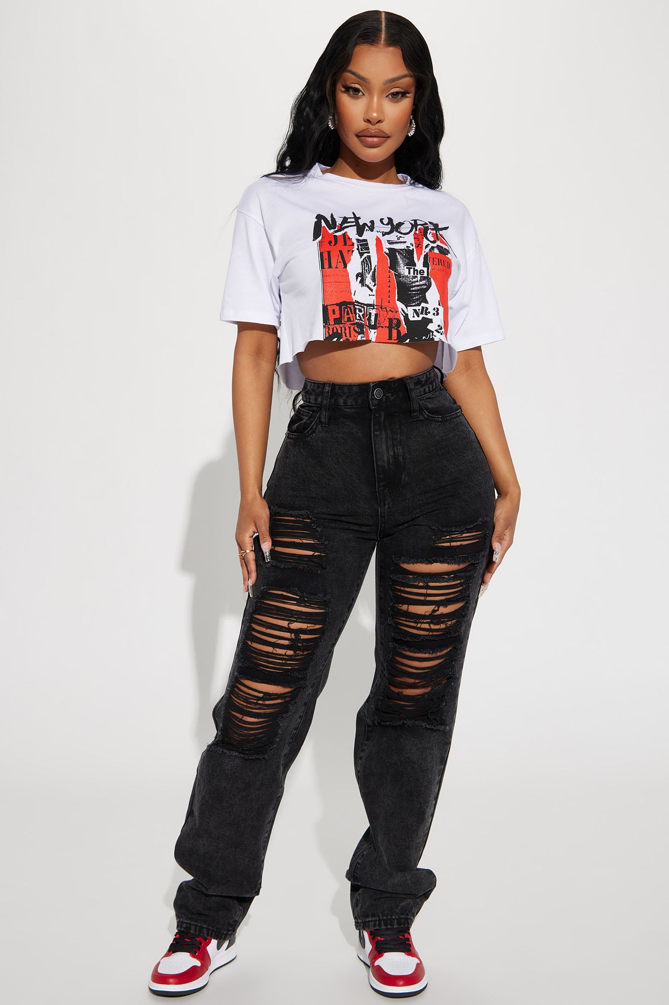 Go Hard Loose Fit Ripped Straight Leg Jean - Black Wash