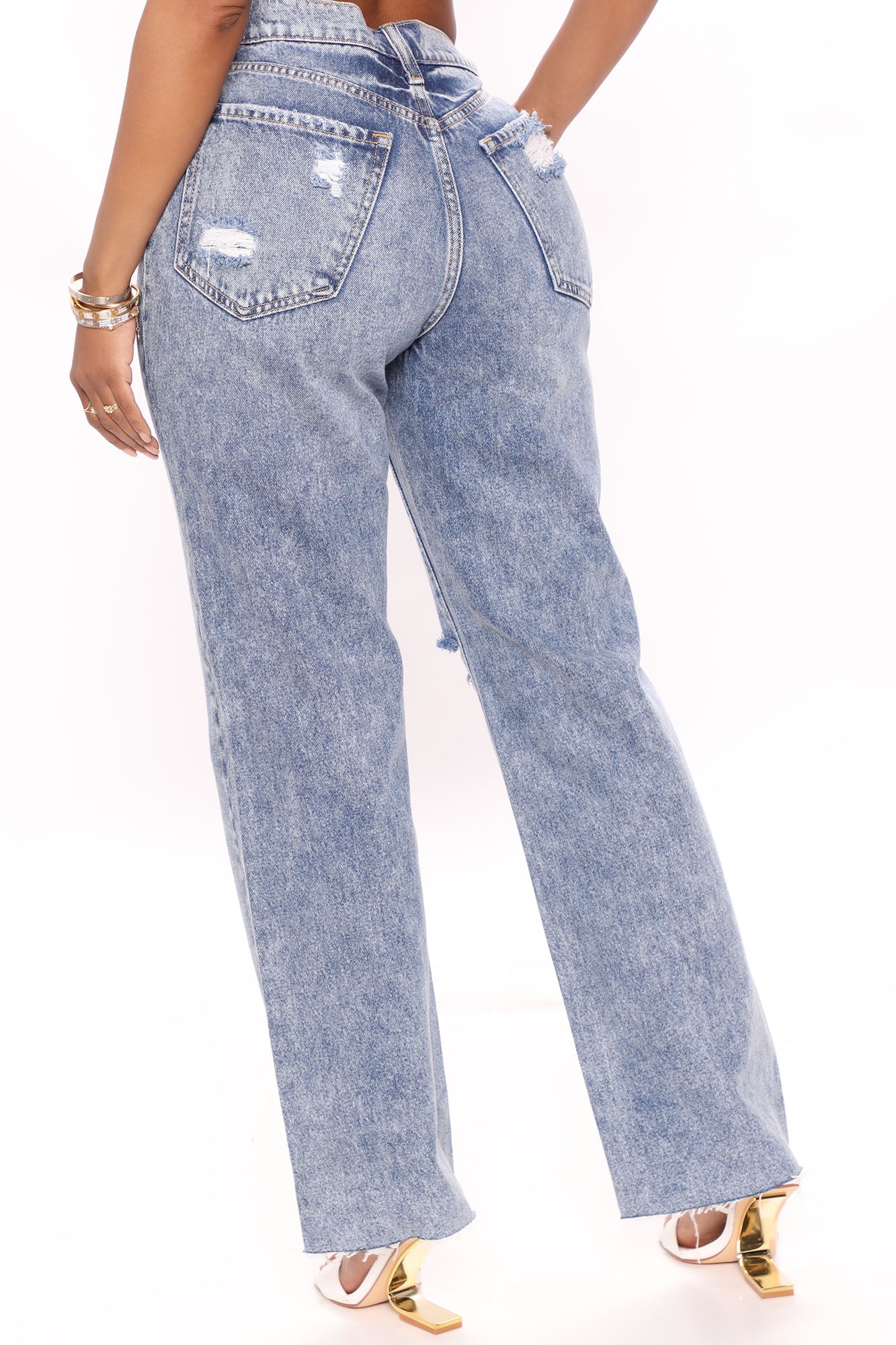 An Easy Choice Distressed Straight Leg Jeans - Medium Blue Wash