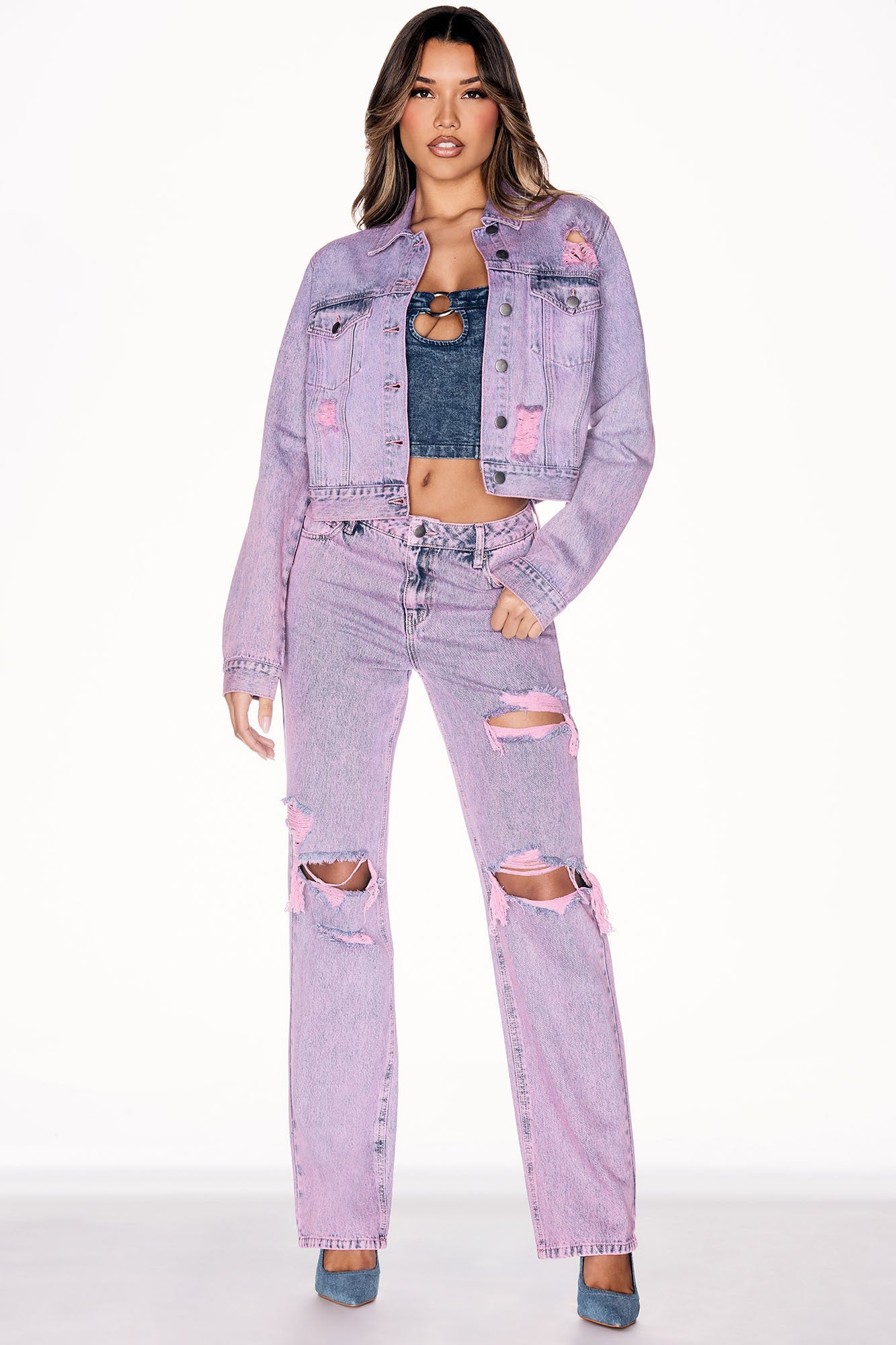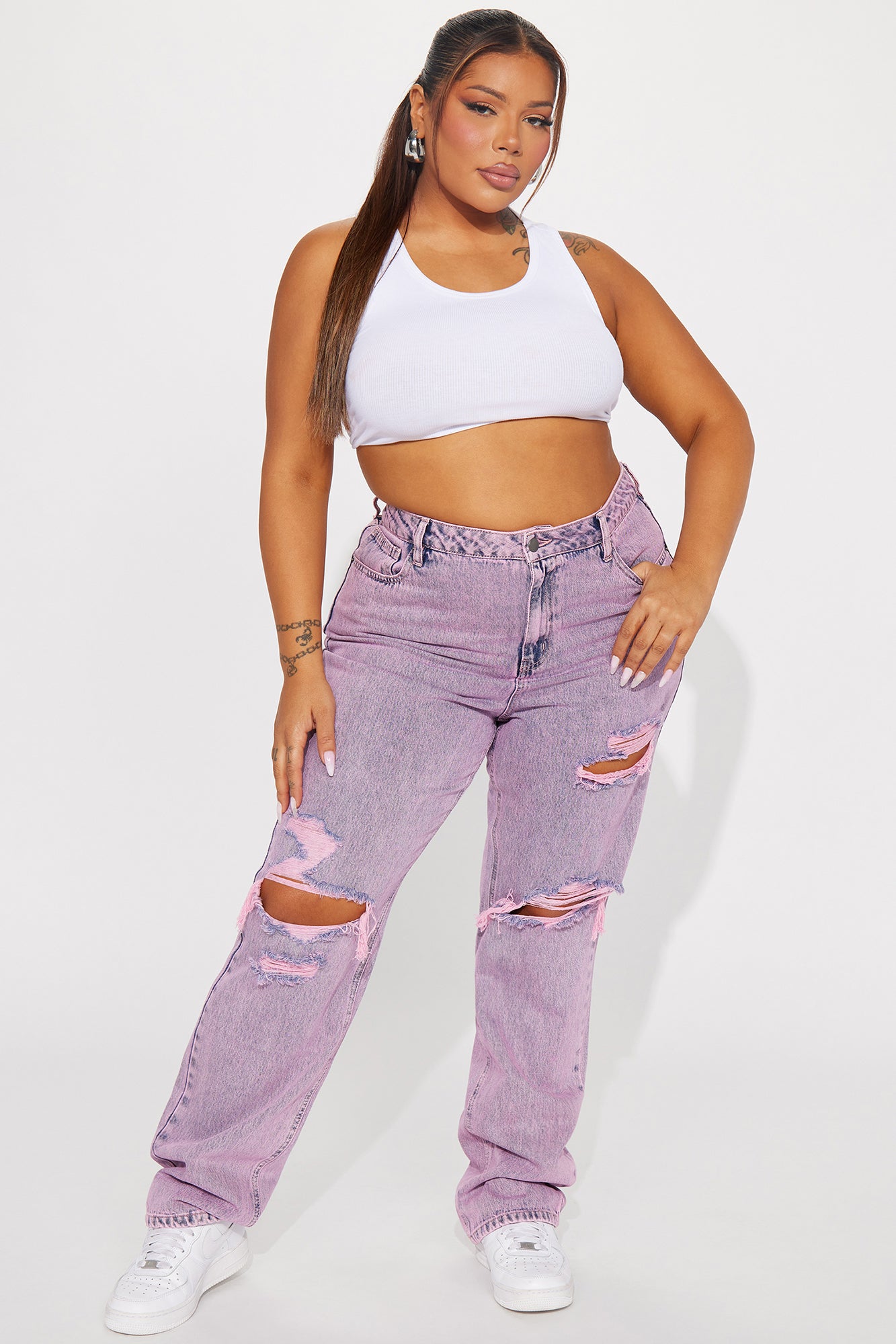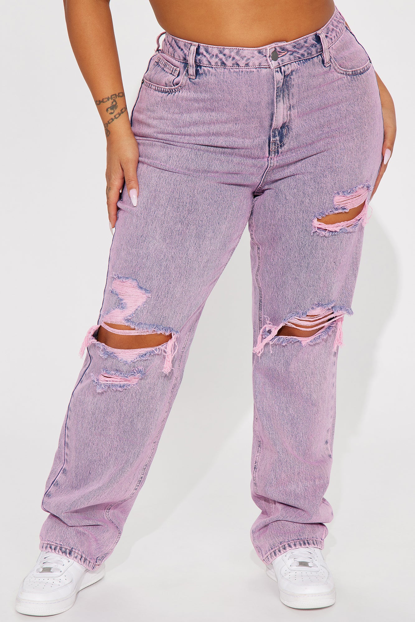 • Best Energy Ripped Straight Leg Jeans - Pink