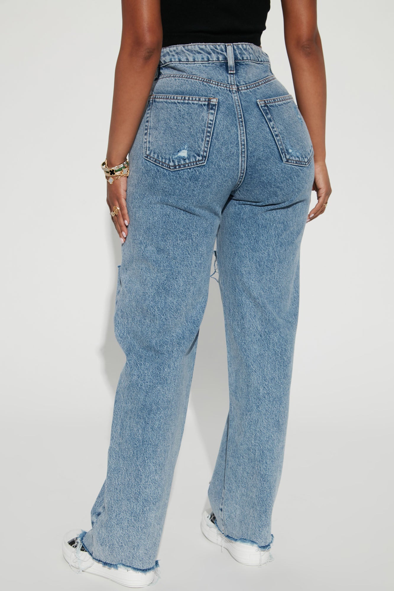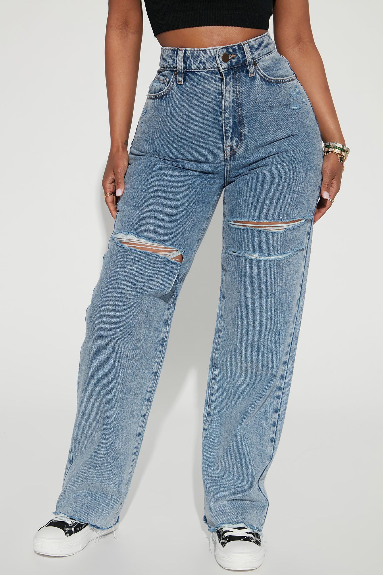 • Calling Home Ripped Non Stretch Straight Leg Jeans - Medium Blue Wash