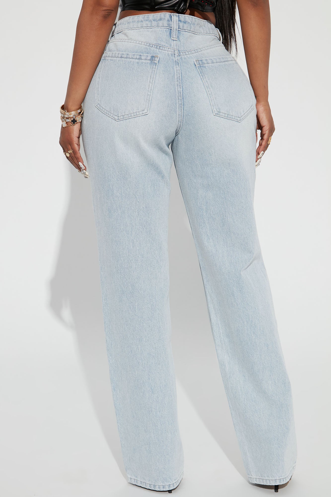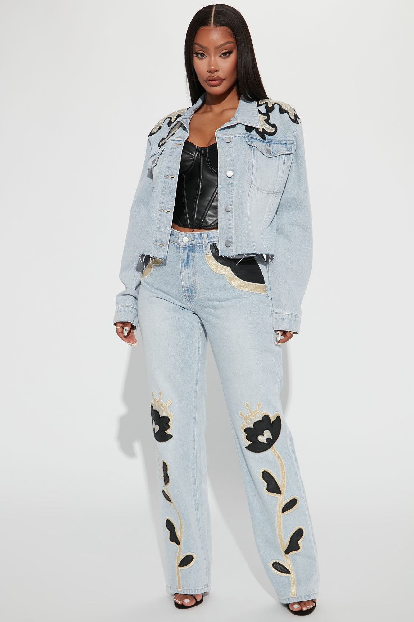 • Charley PU Patch Straight Leg Jeans - Light Wash