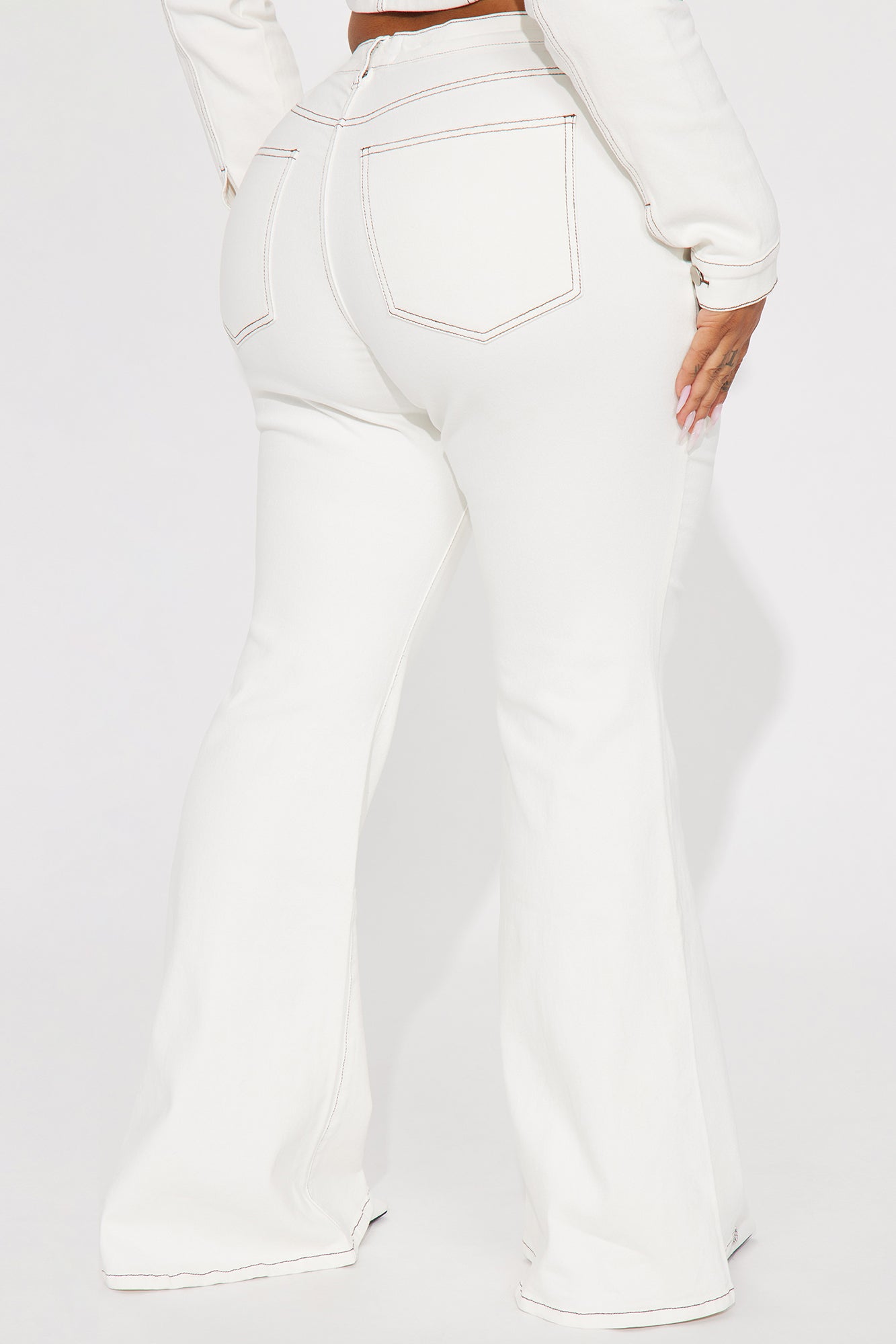 Charlotte Mid Rise Stretch Flare Jeans - White