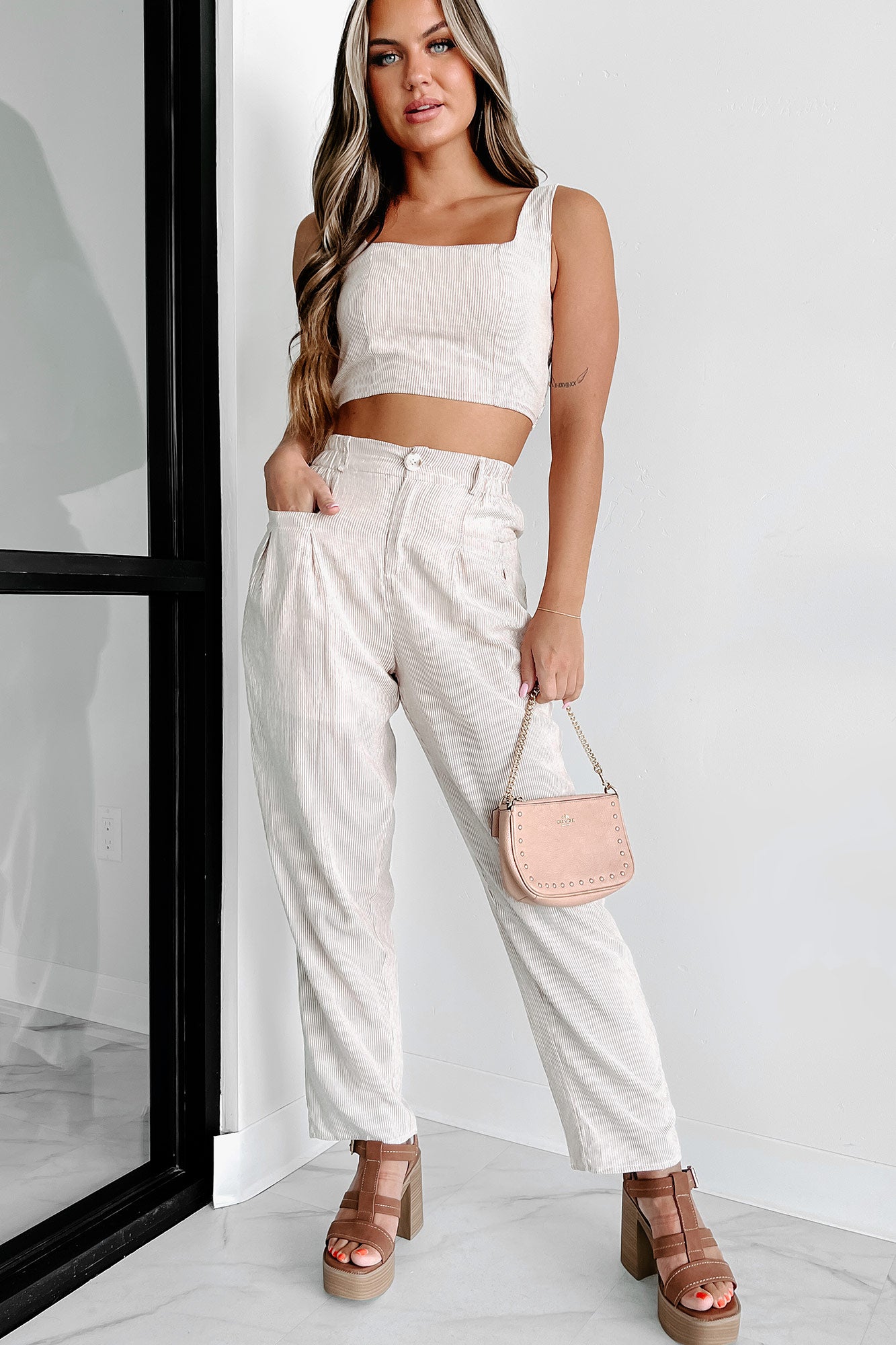 - Pants: Button & Zipper Fly, Stretchy Back Waistband, Side Pockets, Relaxed/Wide Leg Fit