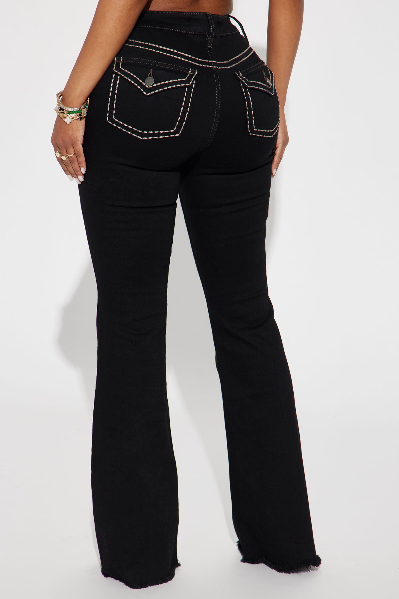 Dallas Mid Rise Stretch Flare Jeans - Black
