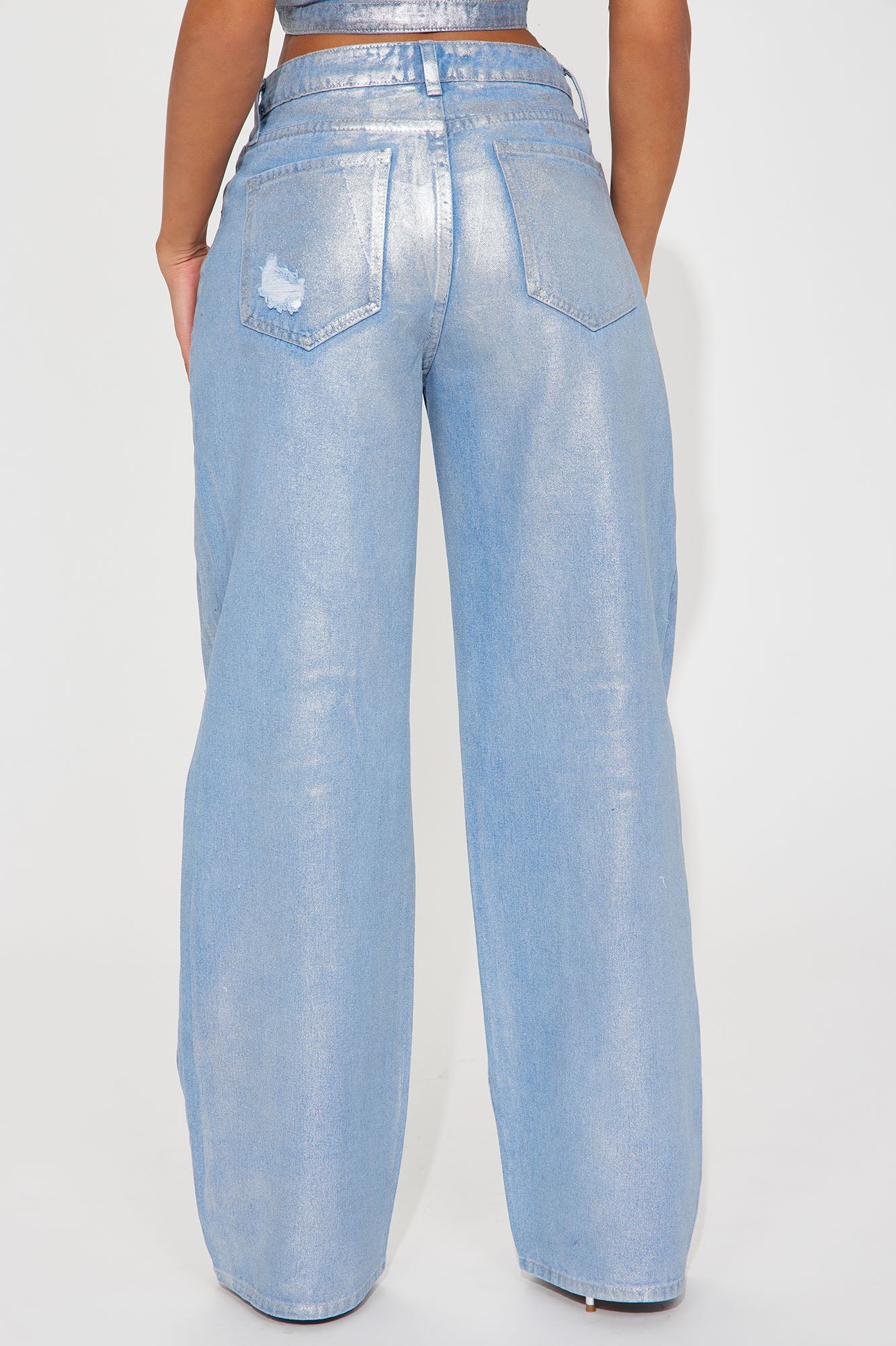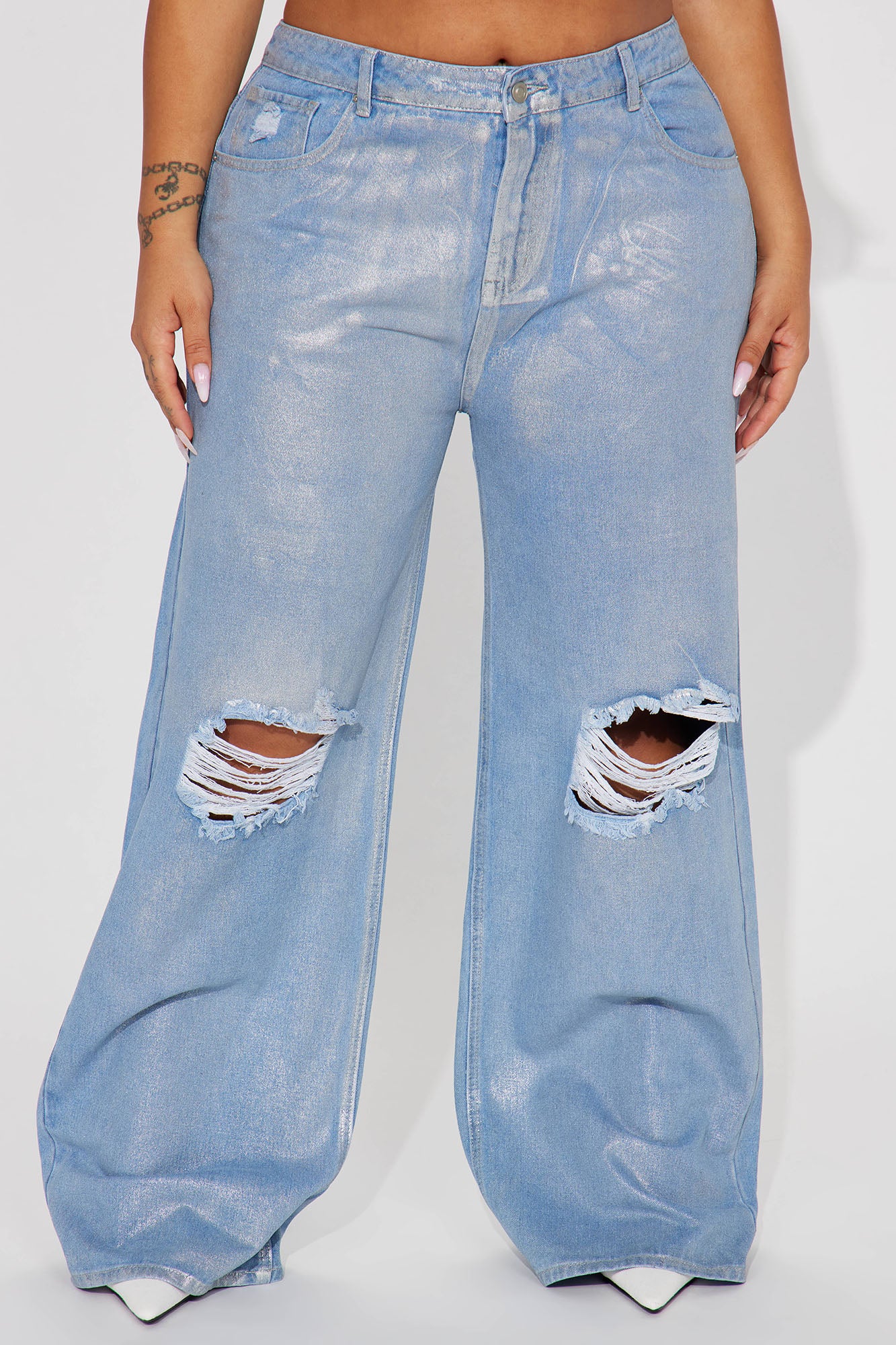 • Freja Foil Ripped Baggy Jeans - Light Wash