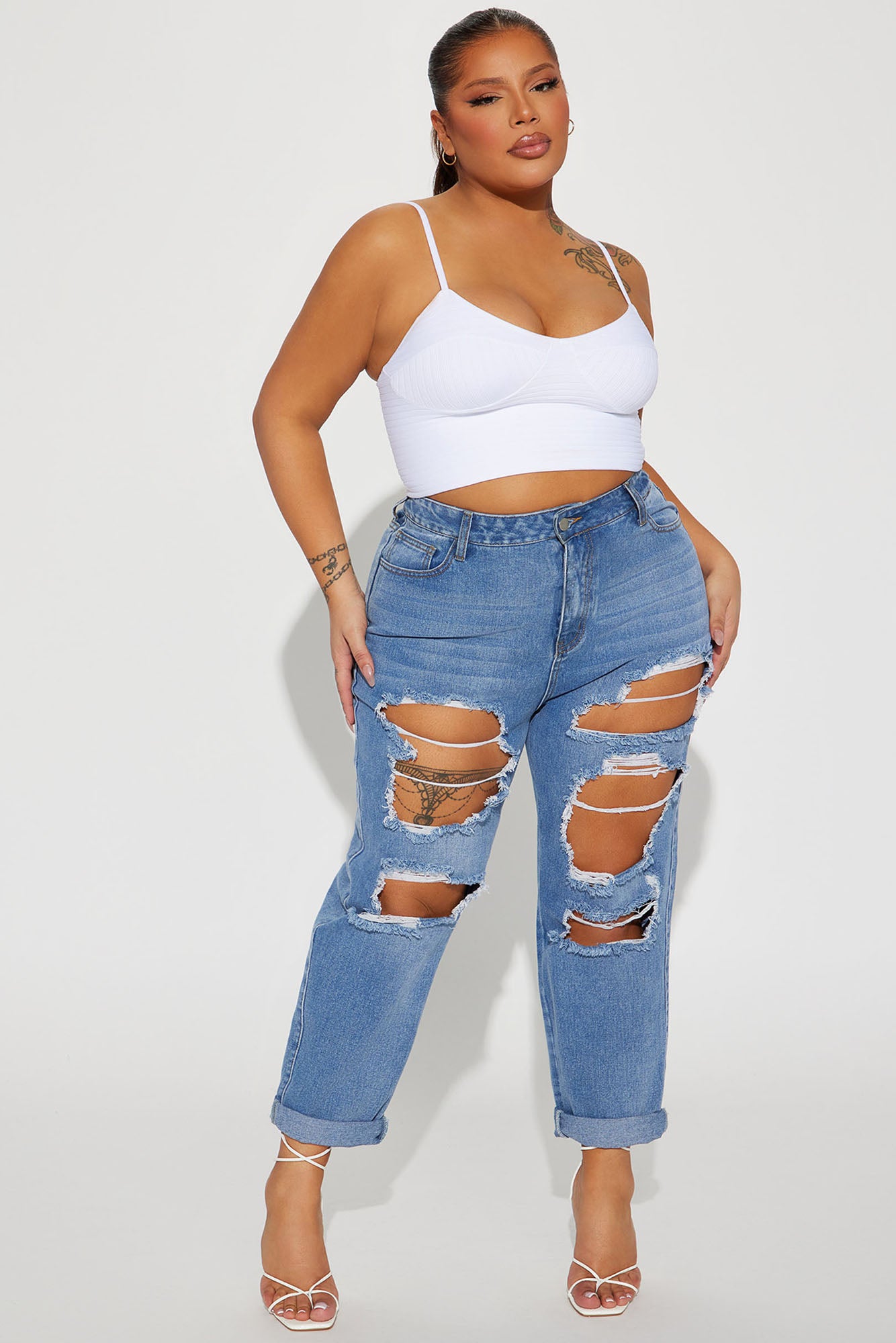Get A Clue Ripped Non Stretch Mom Jeans - Medium Wash