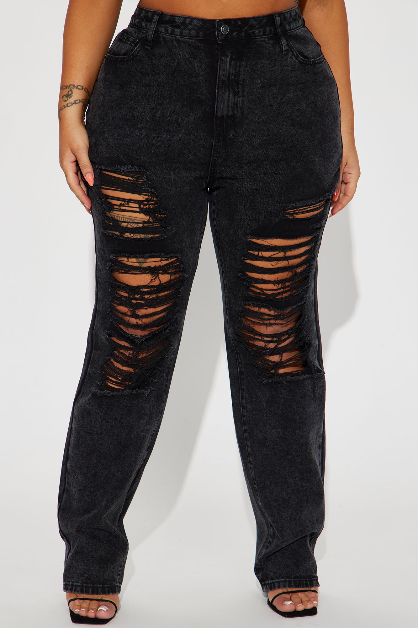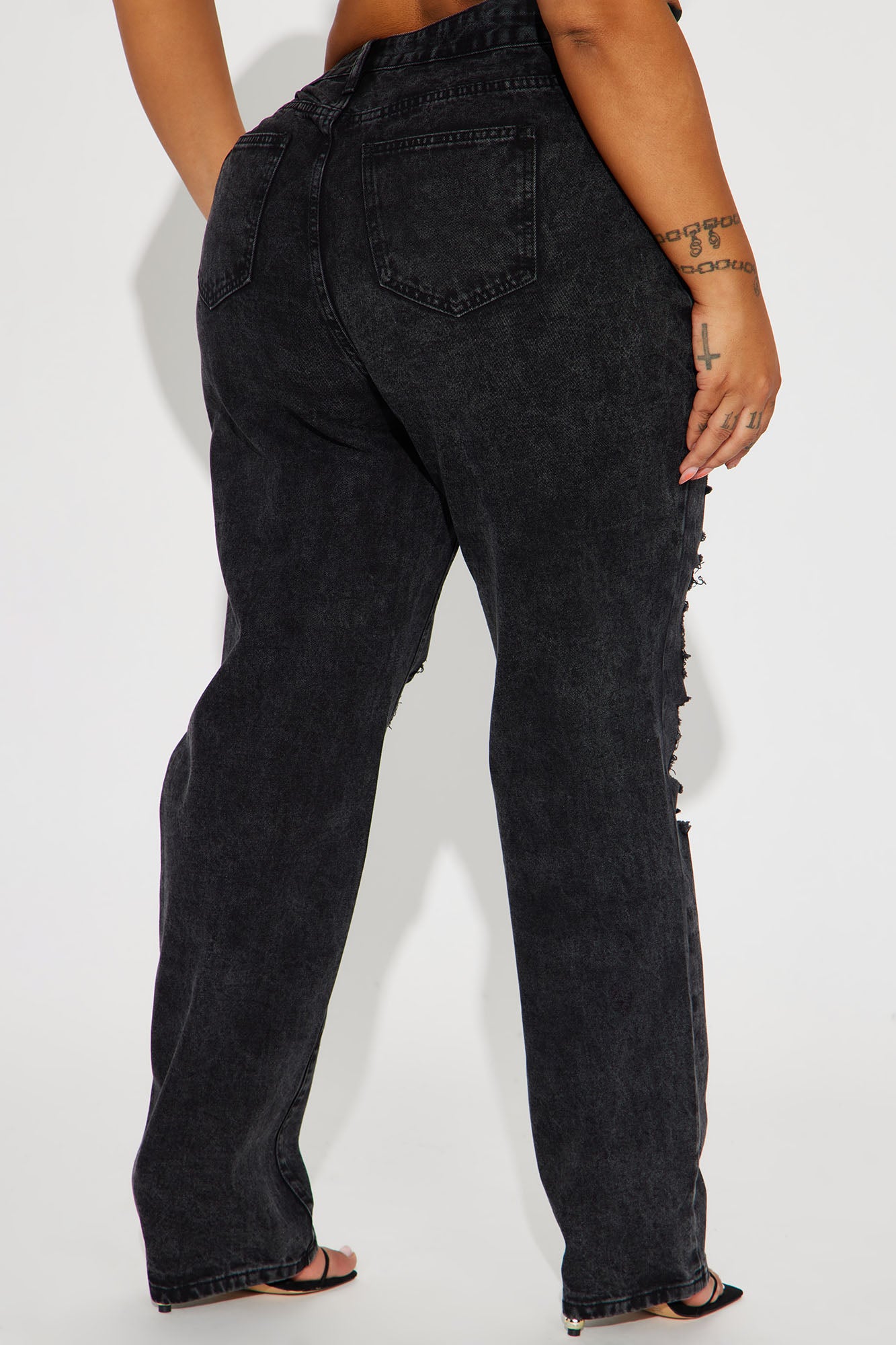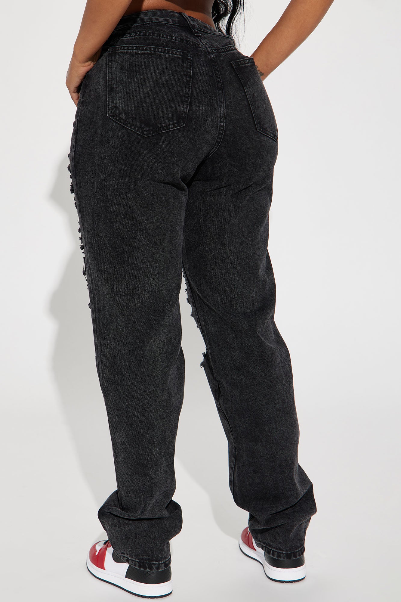 • Go Hard Loose Fit Ripped Straight Leg Jean - Black Wash
