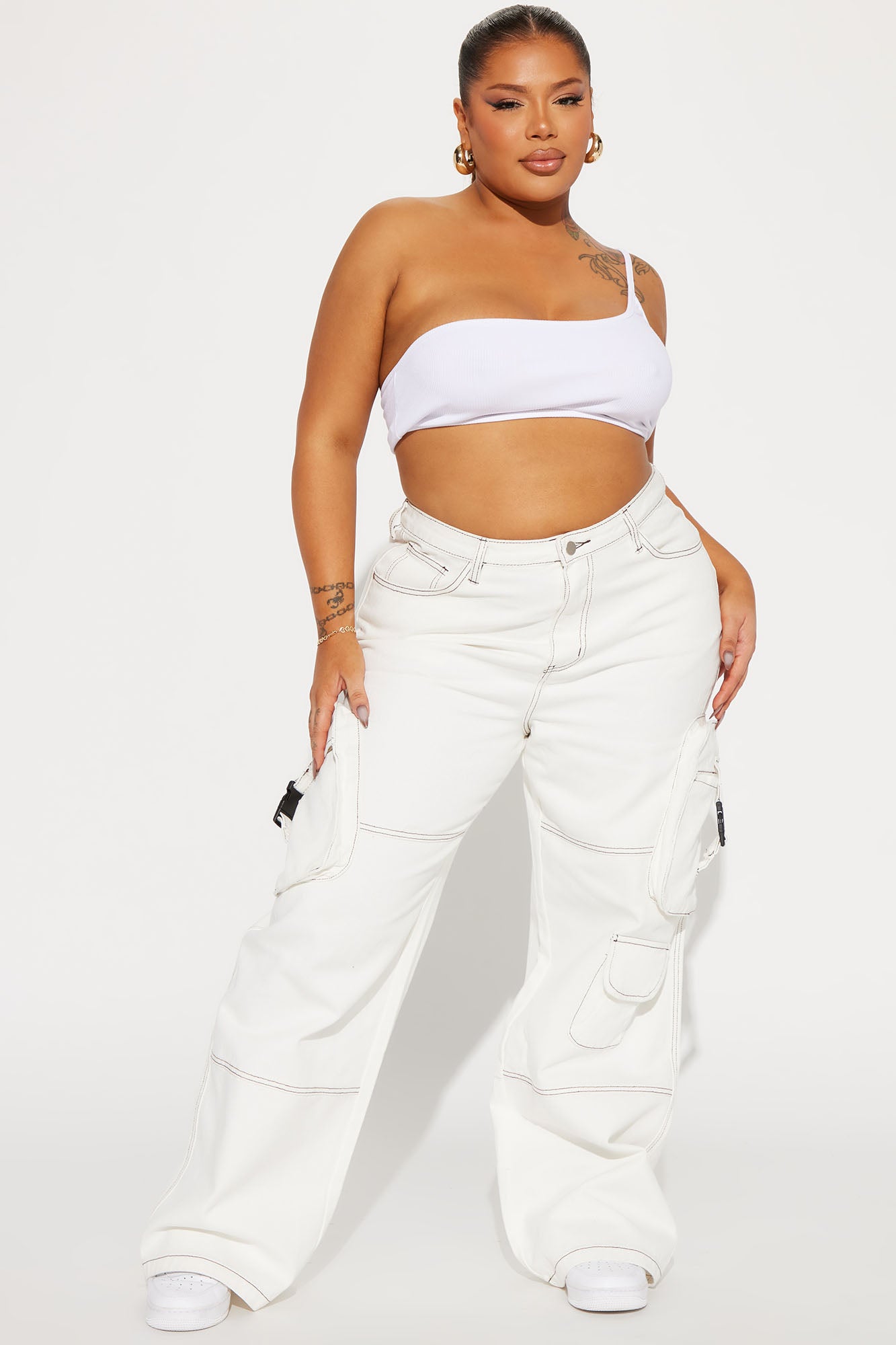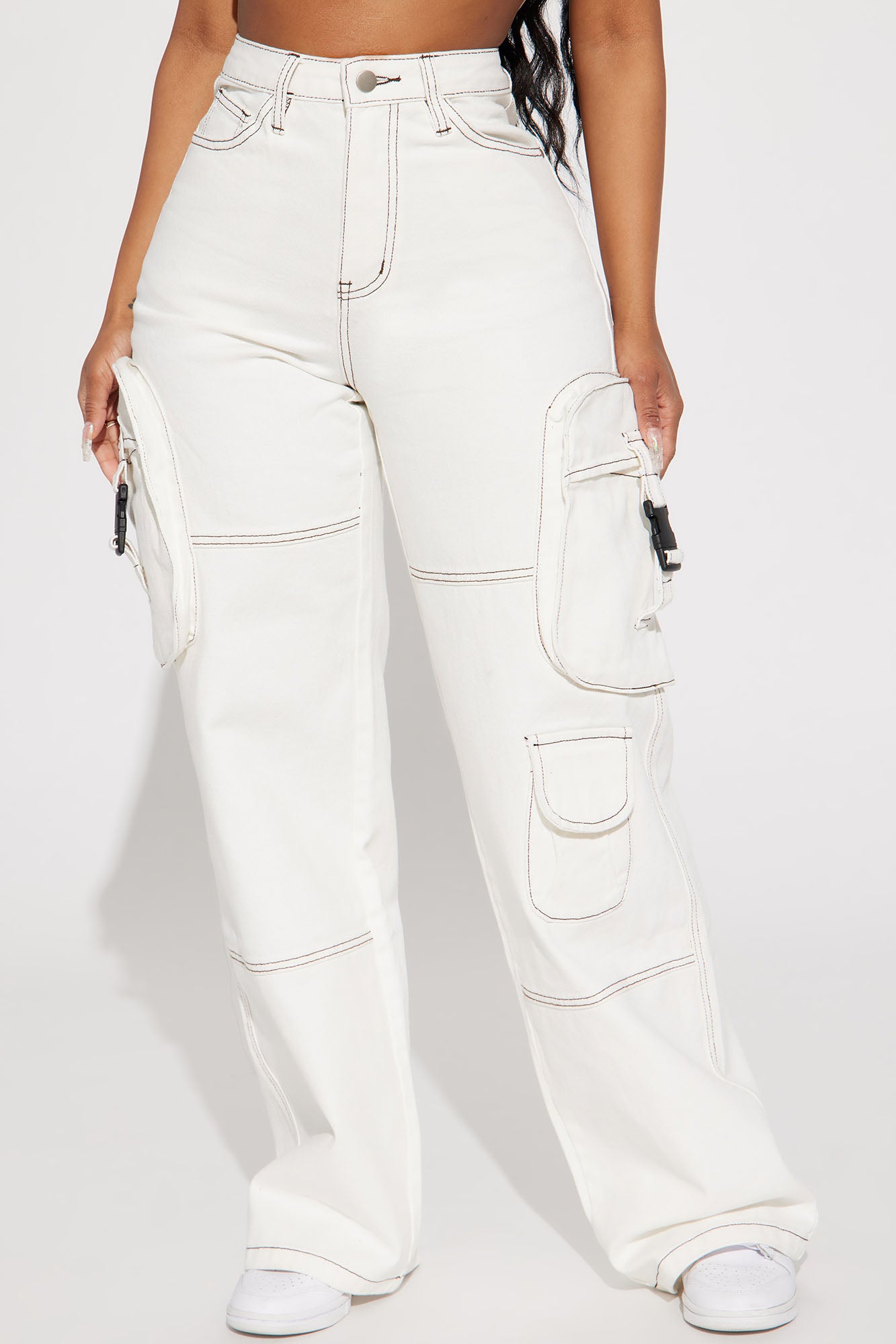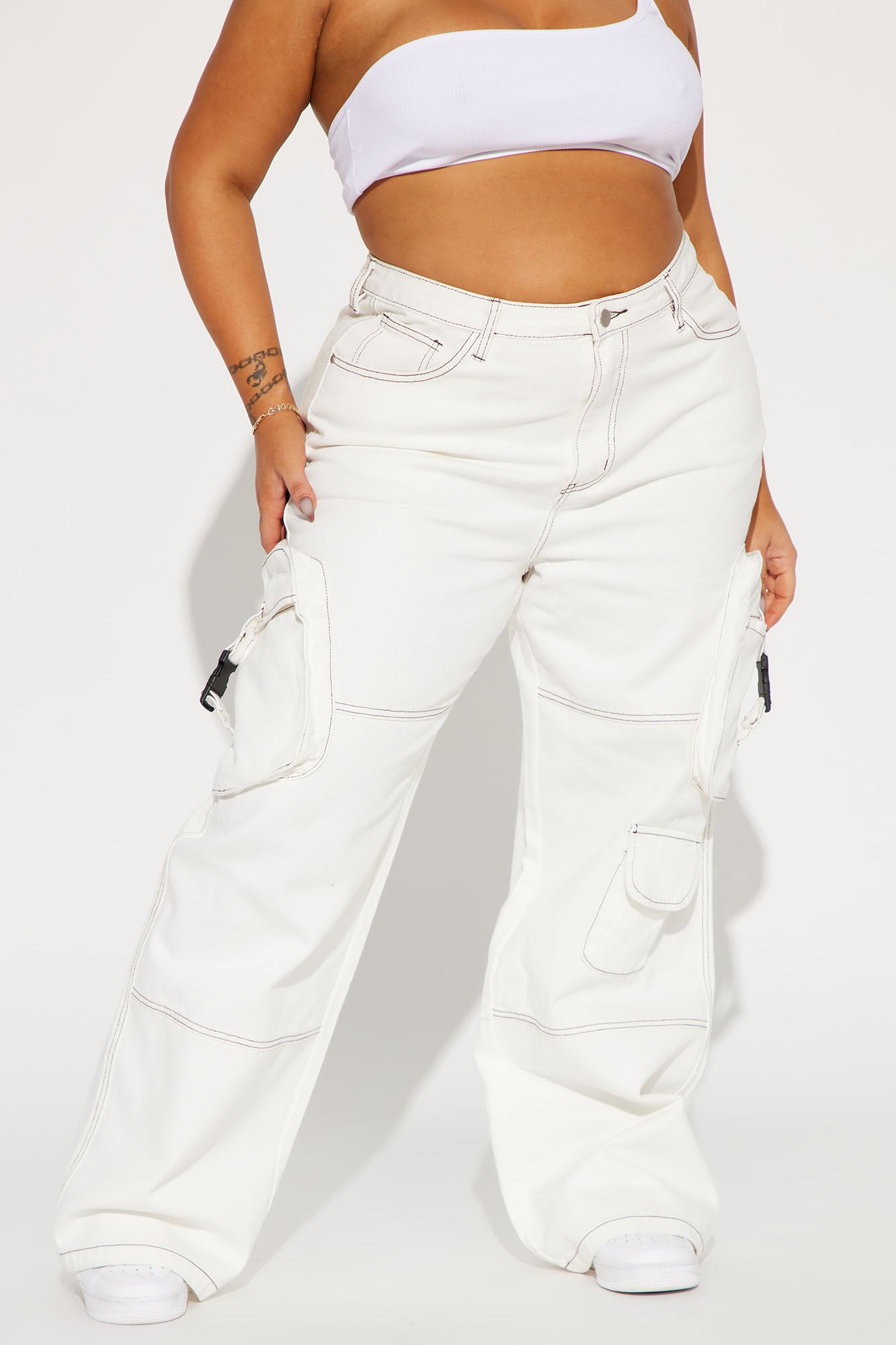 Highest Standards Non Stretch Wide Leg Cargo Jean - White