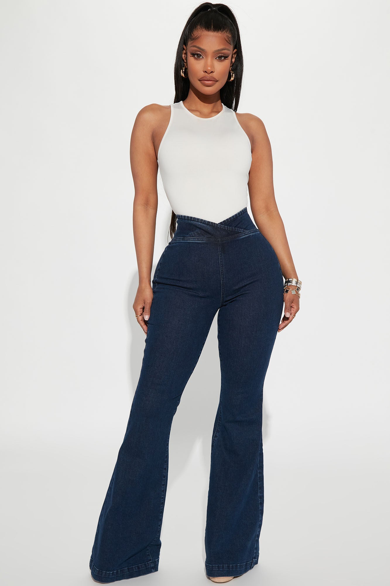 Hug Tight High Stretch Flare Jeans - Dark Wash