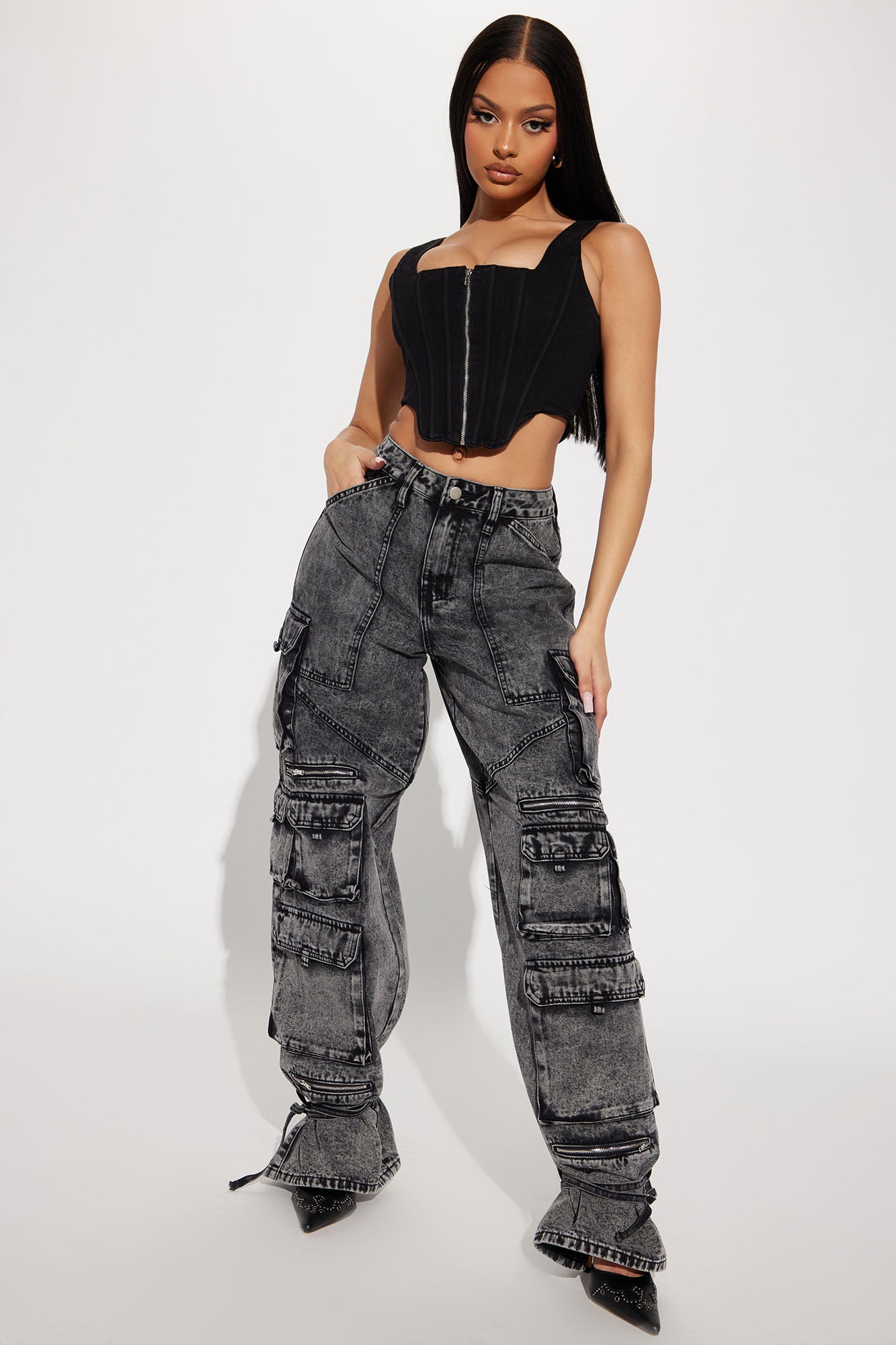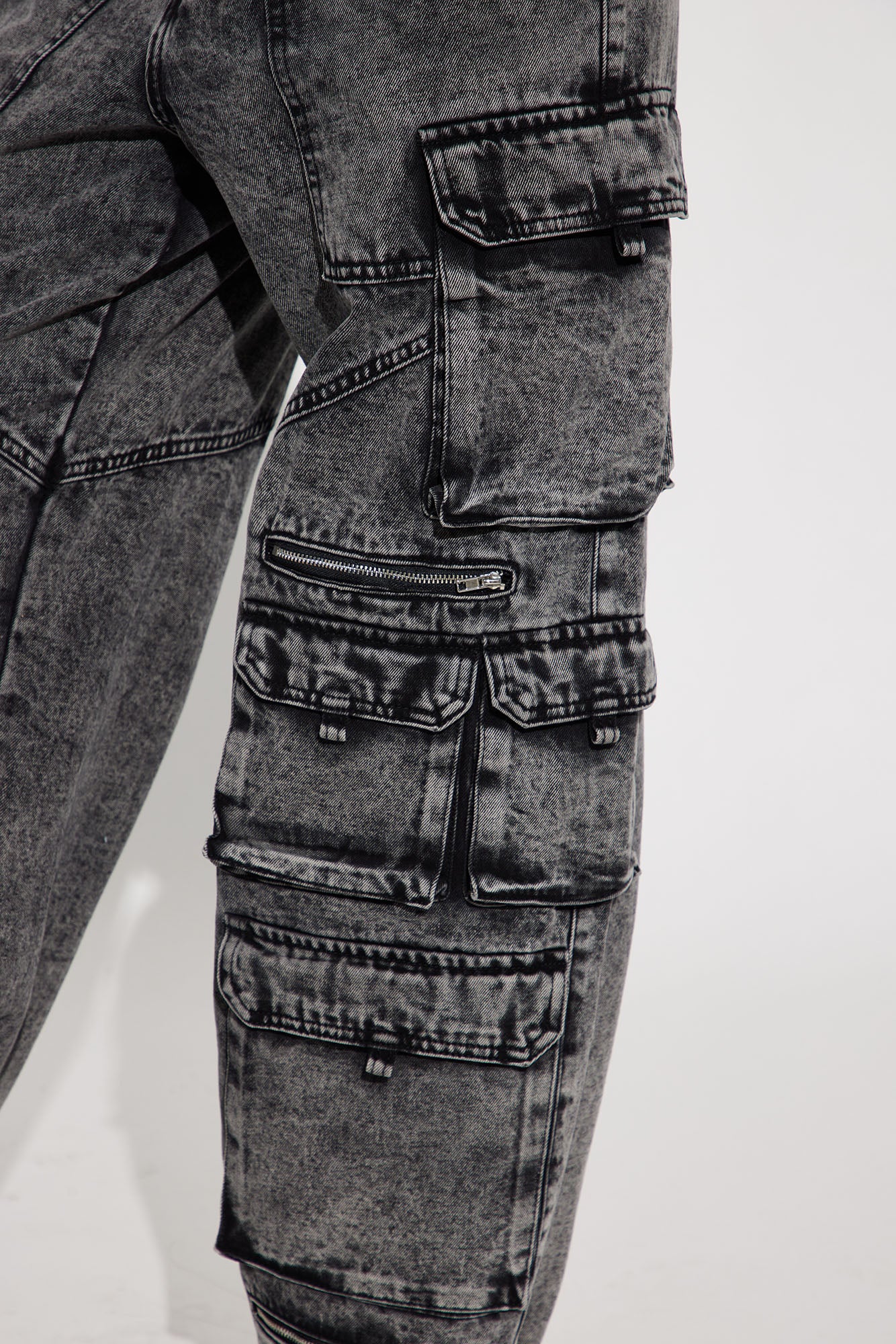 In The Mix Ankle Tie Cargo Jean - Black Wash