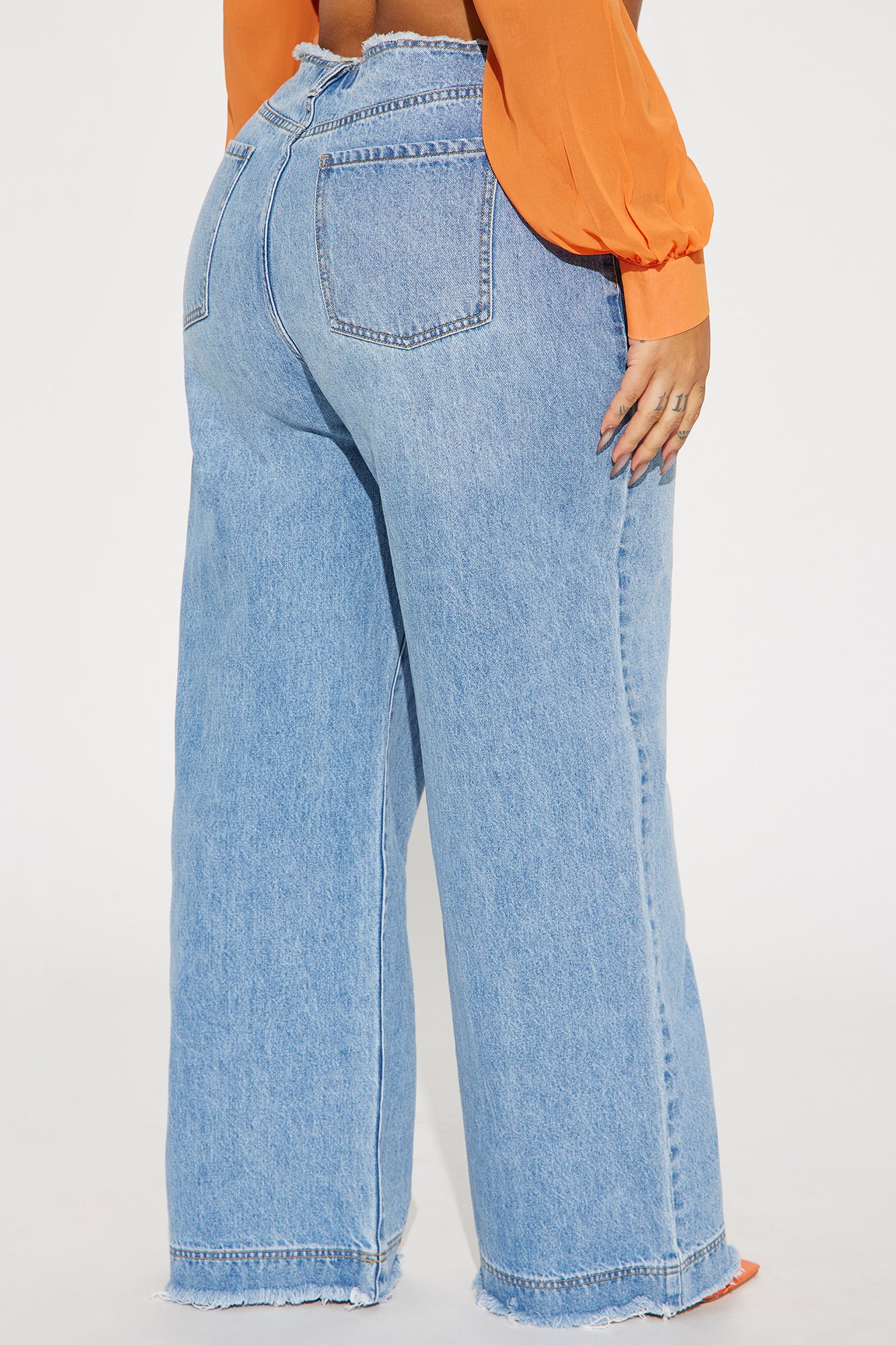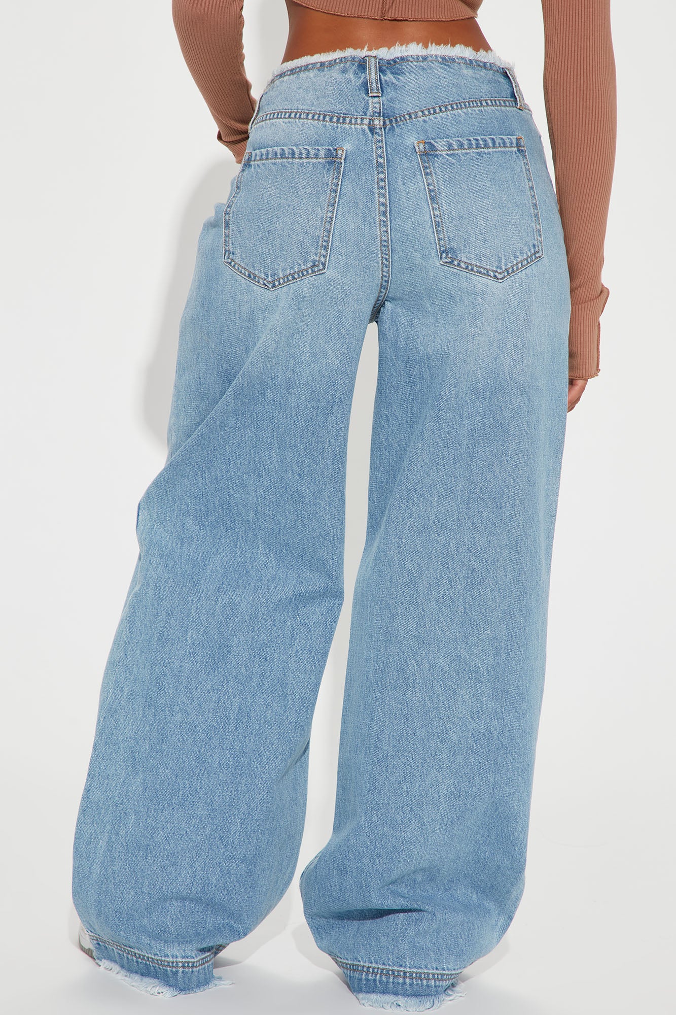 • In Your Dreams Cut Off Waistband Baggy Jean - Medium Wash